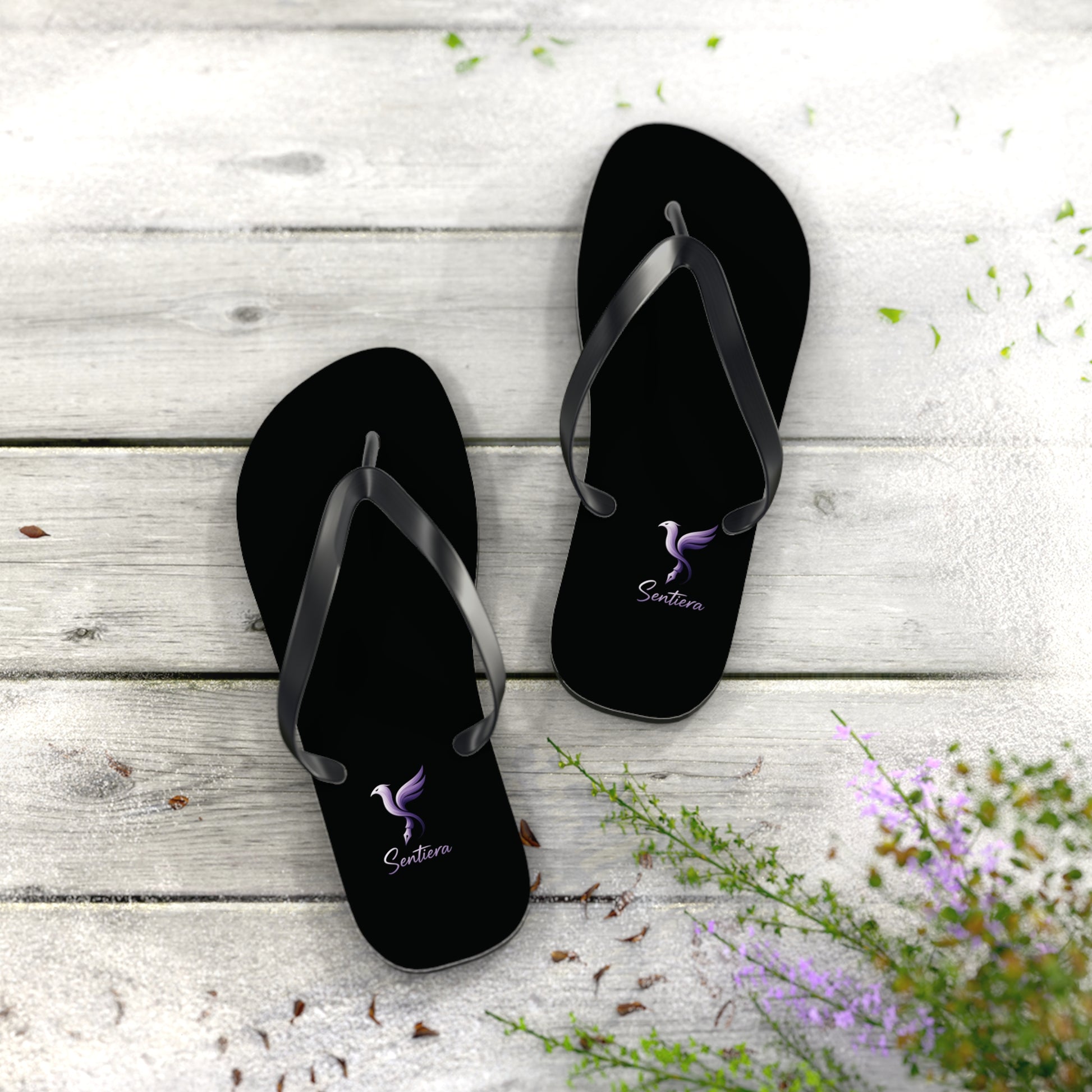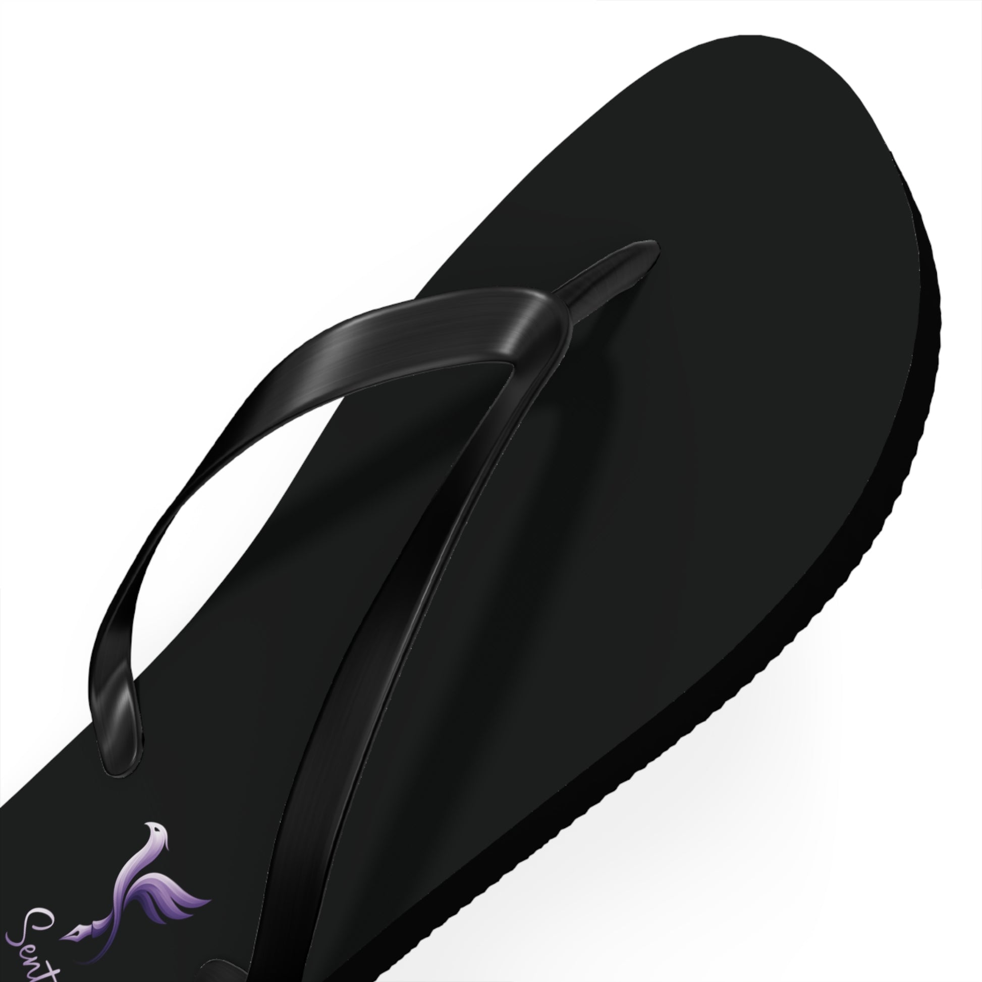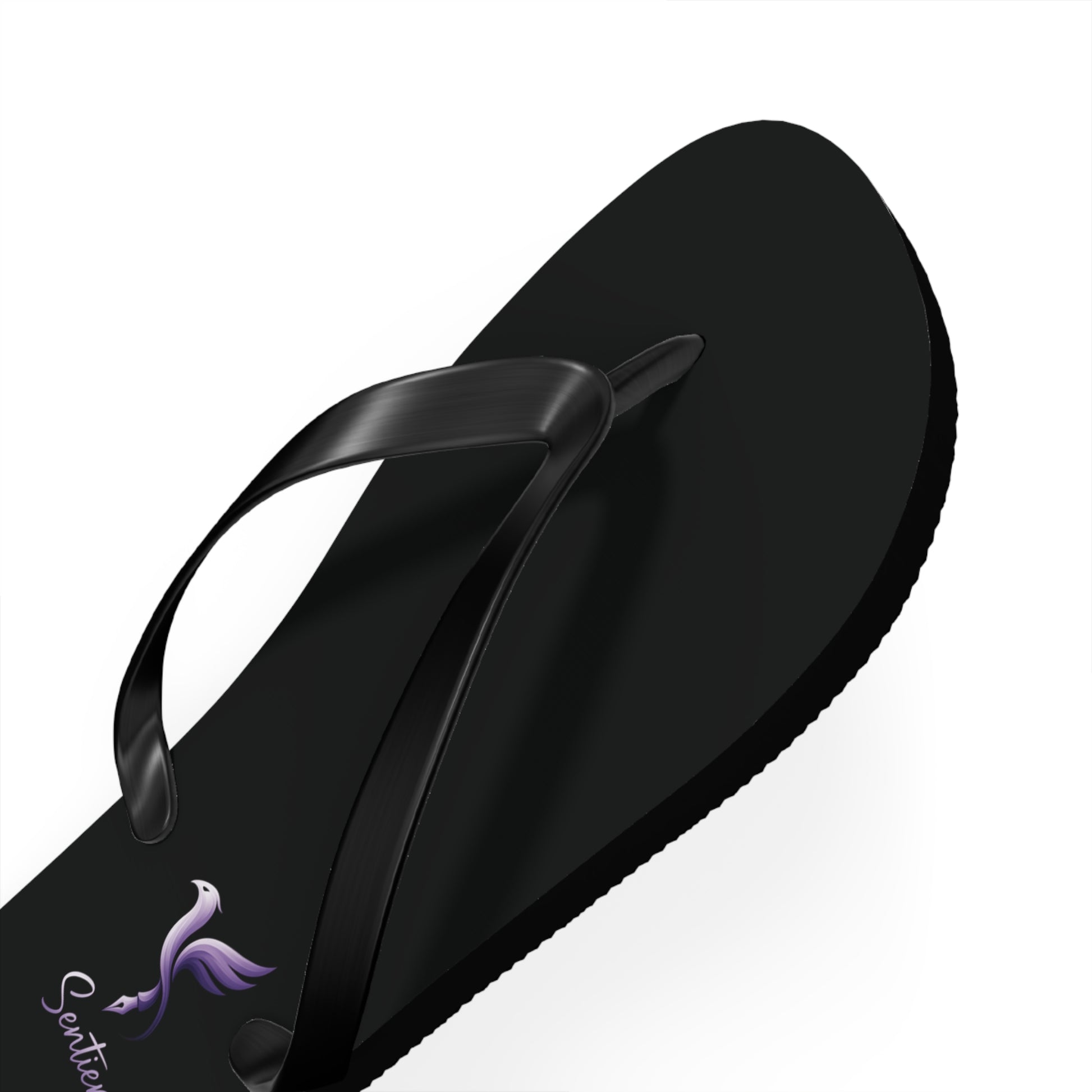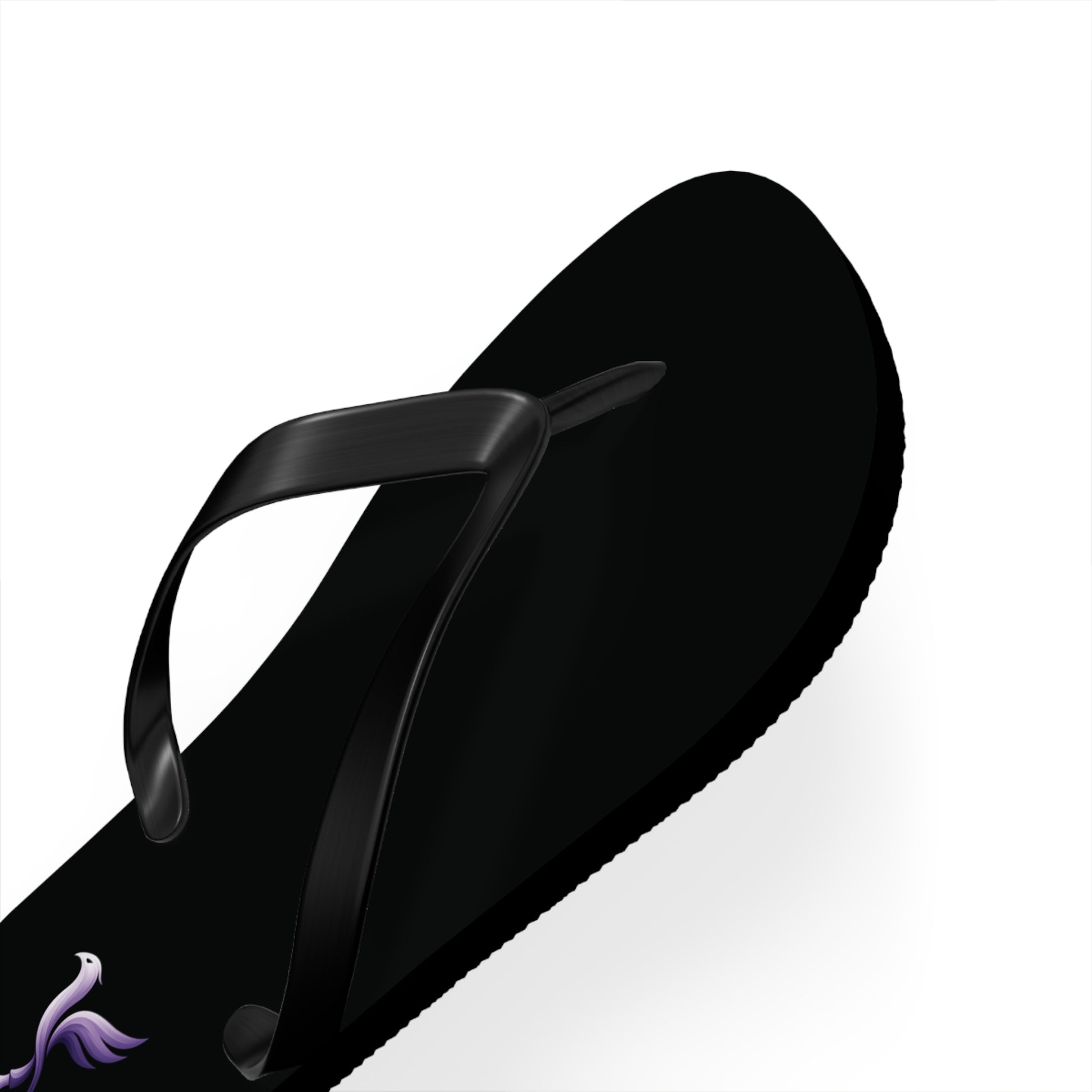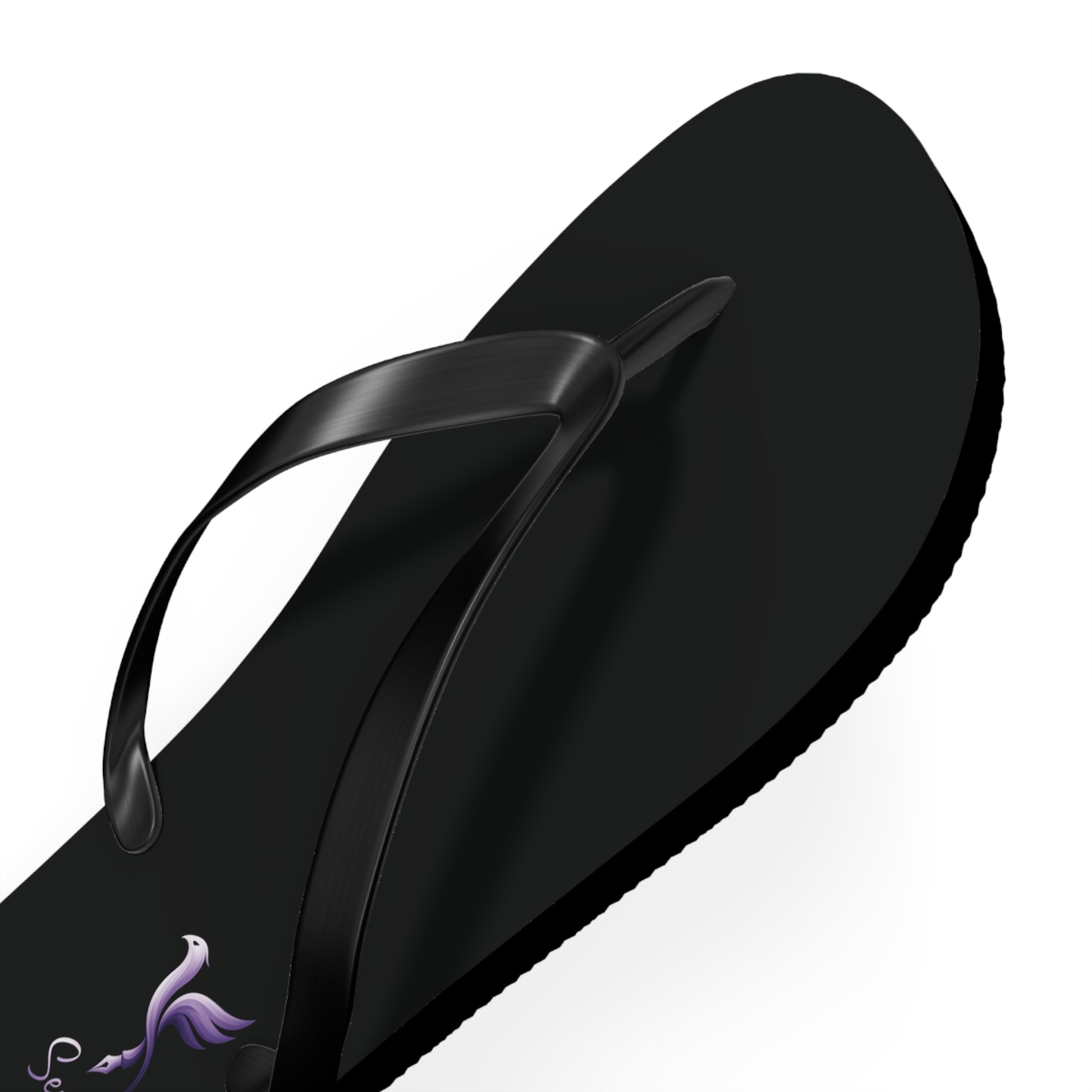 Stylish Black Flip Flops with Elegant Logo, Perfect for Summer, Beach Days, Vacation, Casual Wear, Gift Idea